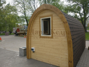 Такой кемпинг дом удобное и практичное решение для дачного использования или обустройства загородных баз отдыха. Увеличенные размеры и боковой вход со стеклянной дверью позволяют зонировать внутреннее пространство помещения. Домик включает в себя: